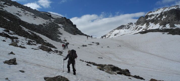 An vier Tagen in der ersten Juli-Hälfte geht es zu zwölft unter Leitung von Gisela Metzler auf teils anspruchsvollen und ausgesetzten Wegen und Steigen und zumeist bei schönem Wetter vis à vis der gut eingeschneiten Bernina von St. Moritz nach Livigno. Zuerst eine Eingehtour auf einen der Hausberge von St. Moritz-Bad. Dann zur Talstation Punt Muragl und ab der Bergstation Muottas Muragl mit großartigem Panorama schließlich über den Steinbockweg auf den Piz Languard. Übernachtung in der einfachen Georgy's/Languard-Hütte nur wenig unter dem Gipfel auf 3.202m – ein grandios gelegener Aussichtsbalkon auf den Festsaal der Alpen. Und als Nachbarn ein paar Steinböcke, die um die Hütte streifen. Am nächsten Tag über große Restschneefelder zur Fuorcla Pischa und – ganz kurz sehr ausgesetzt - steil hinunter in das Blumenparadies und die Wildschutzzone Val da Fain. Hier gemütlich über La Stretta hinunter zur Pass-Straße und nach Livigno. Am letzten Tag schließlich von der Forcla di Livigno noch auf den schönen Aussichtsberg Monte Vago (3.058 m), das letzte Stück im Blockgelände auf einem leicht ausgesetzten Grat.